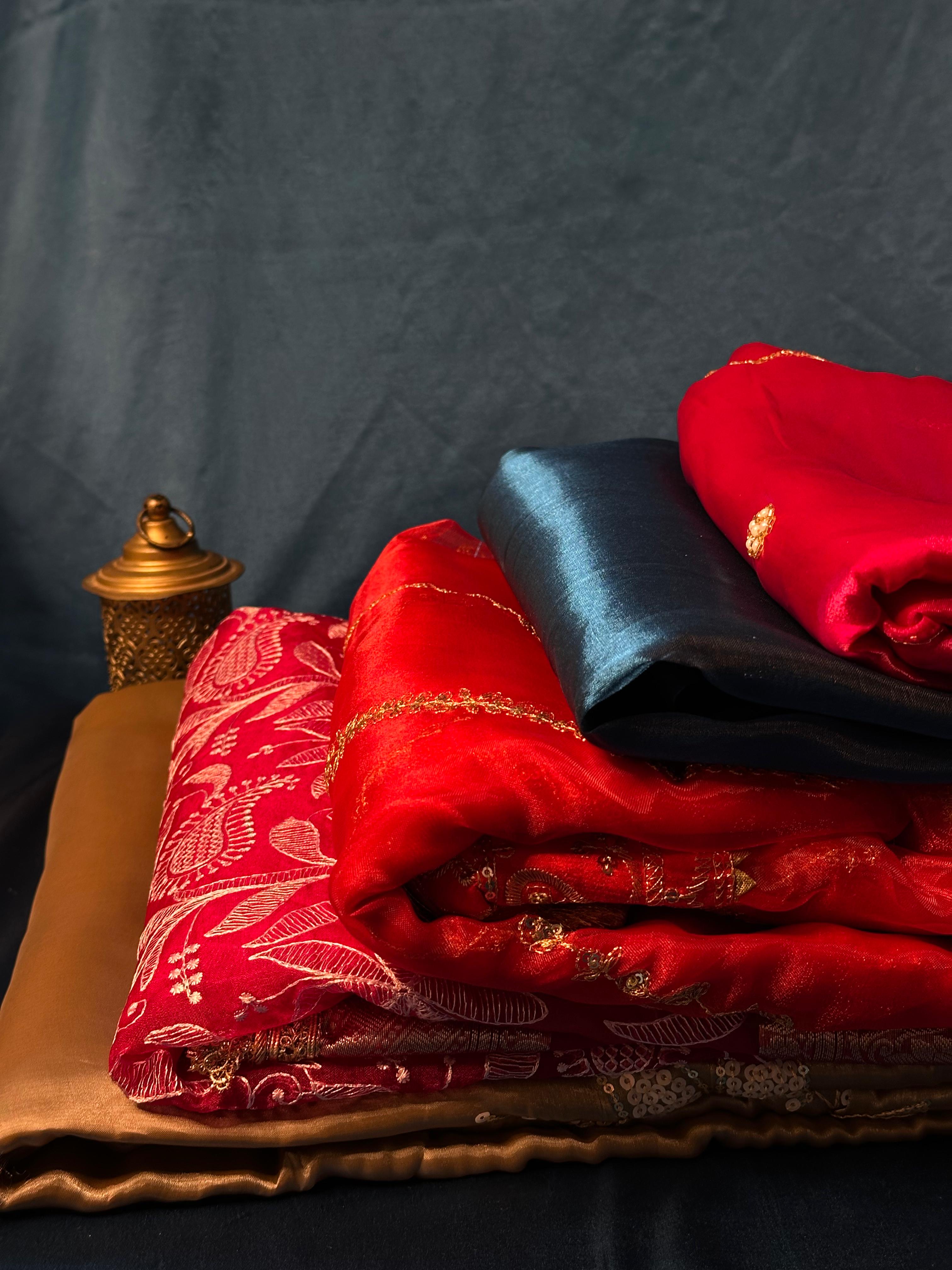 Organza - Lastly, for an ultra-feminine and delicate appeal, Organza sarees won't disappoint! With their luminous and translucent material, you're bound to make a lasting impression.