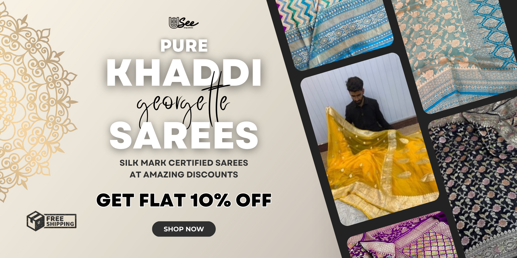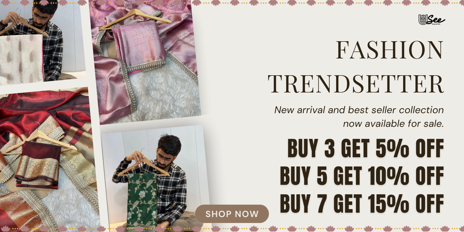 The Usee Shop provides access to the latest collections straight from the designing and manufacturing hands that craft them with love and care! Be it the traditional Banarasi sarees or the shimmering georgette ones, The Usee Shop has them all. Create stylish outfits by combining them with chic tops or a trendy jacket of your liking. With UseeShop’s large collection of both traditional and fancy sarees, shopping has never been more convenient. You can now embrace your traditional style right from the comfort of your home, by shopping on Useeshop!