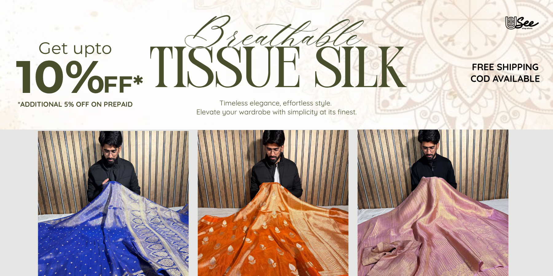 The Usee Shop provides access to the latest collections straight from the designing and manufacturing hands that craft them with love and care! Be it the traditional Banarasi sarees or the shimmering georgette ones, The Usee Shop has them all. Create stylish outfits by combining them with chic tops or a trendy jacket of your liking. With UseeShop’s large collection of both traditional and fancy sarees, shopping has never been more convenient. You can now embrace your traditional style right from the comfort of your home, by shopping on Useeshop!
