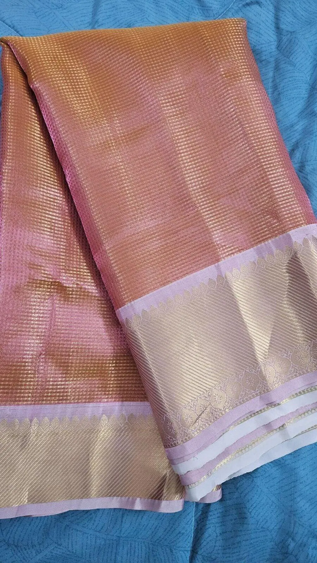 Baby Pink Embossed Kanjivaram Tissue Saree