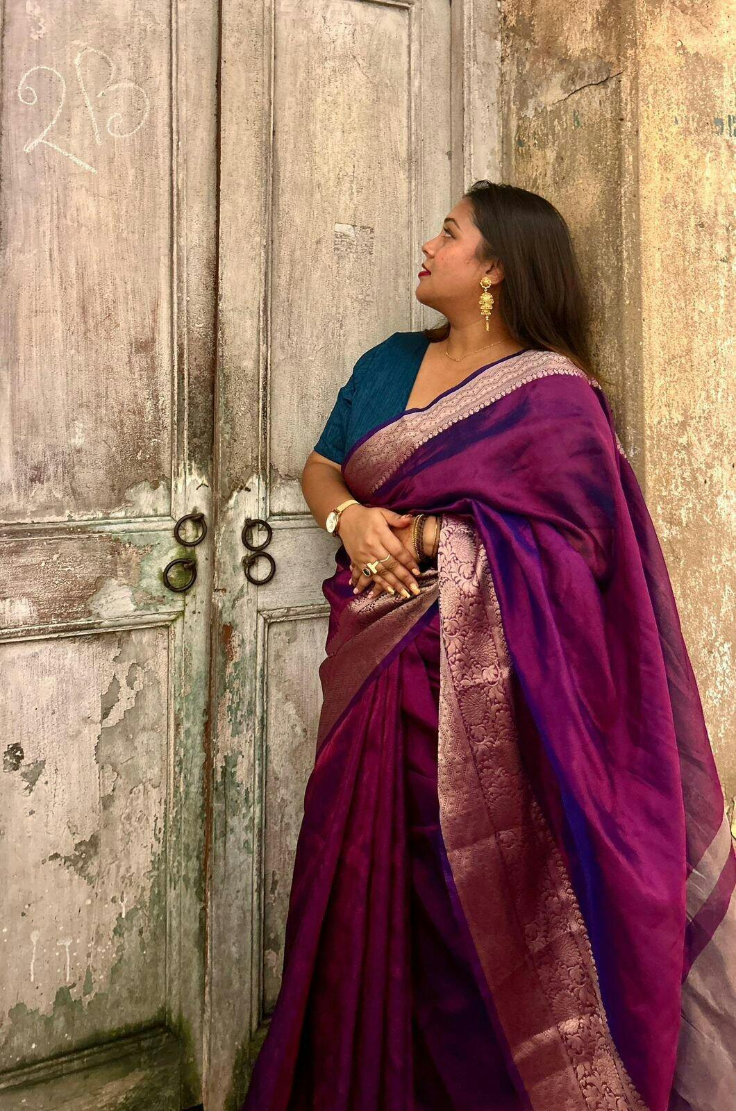 Rare Baigani Shade Exclusive Soft Tissue Silk Banarasi Saree in Heritage Traditional Weave