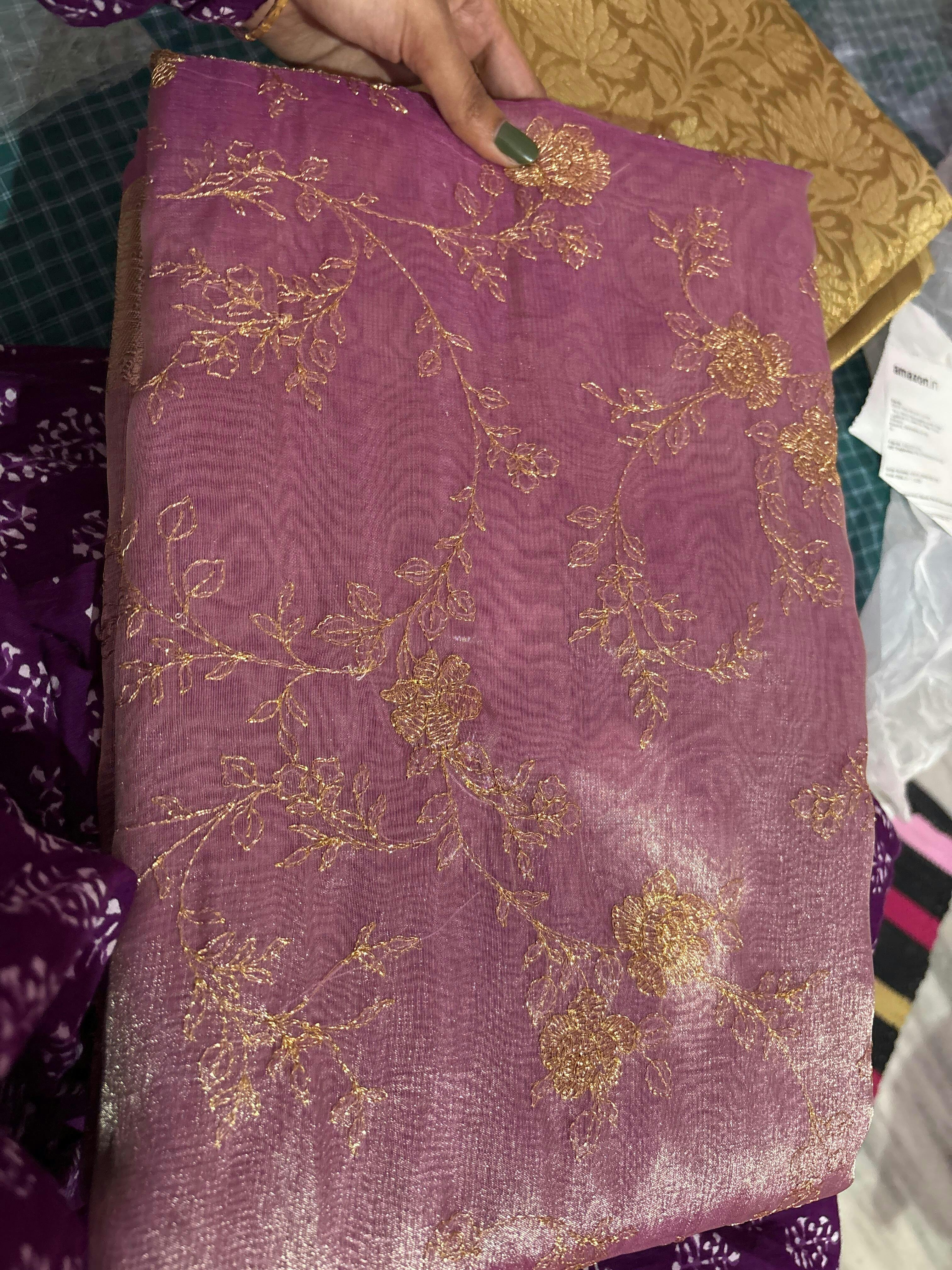 This Bright Pink Tissue Silk Chikankari Banarasi Saree captures tradition through delicate details. Crafted on a sheer base, it features elegant chikankari embroidery that adds subtle texture and richness. A soft, feather-light drape makes it a comfortable pick for long events or intimate festive occasions.
