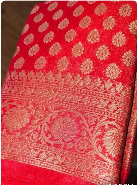 Bright Red Georgette Silk Banarasi Saree