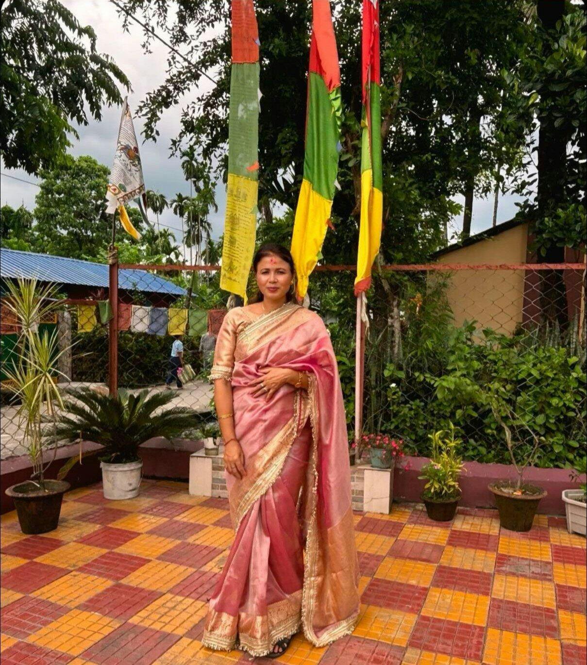 Eye soothing Light Pink Tissue Silk Gota Work Banarasi Saree