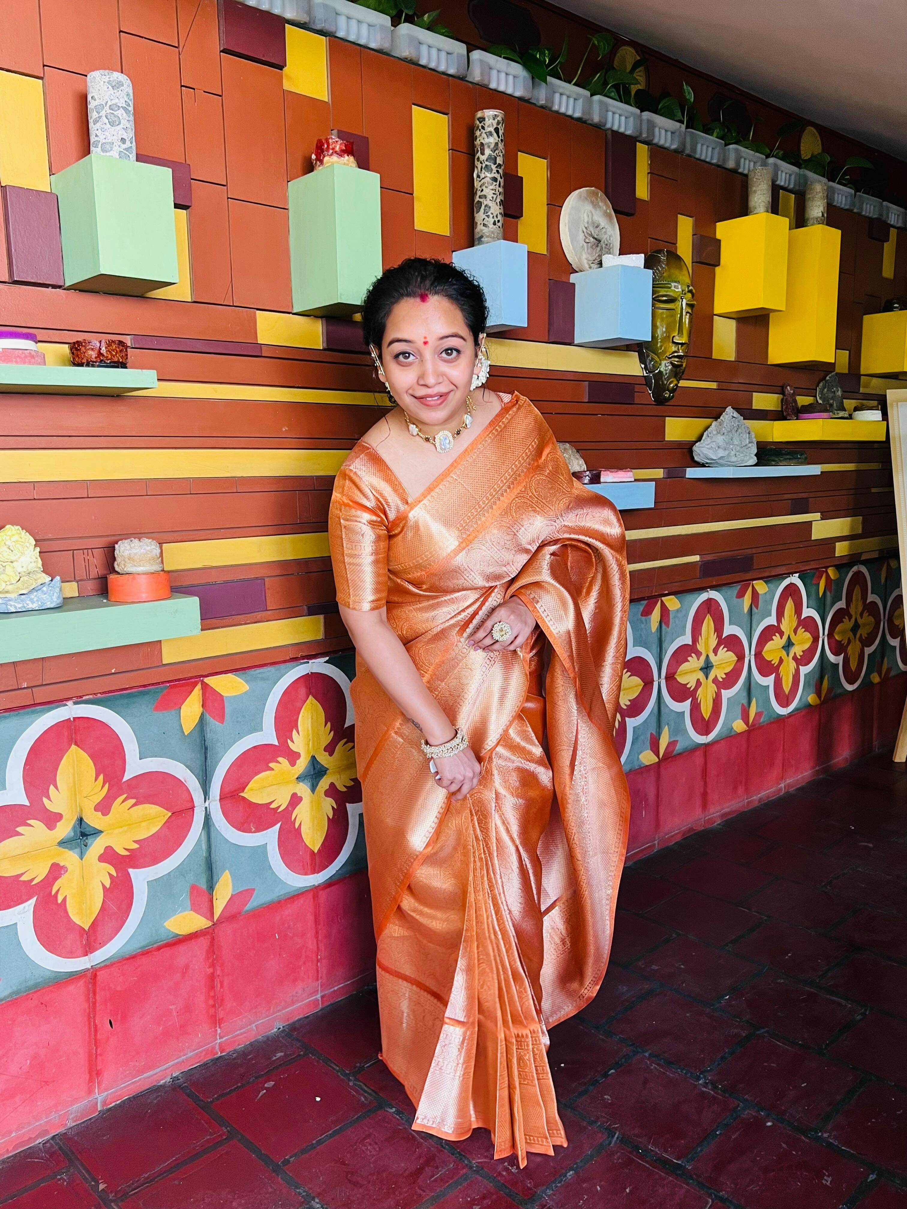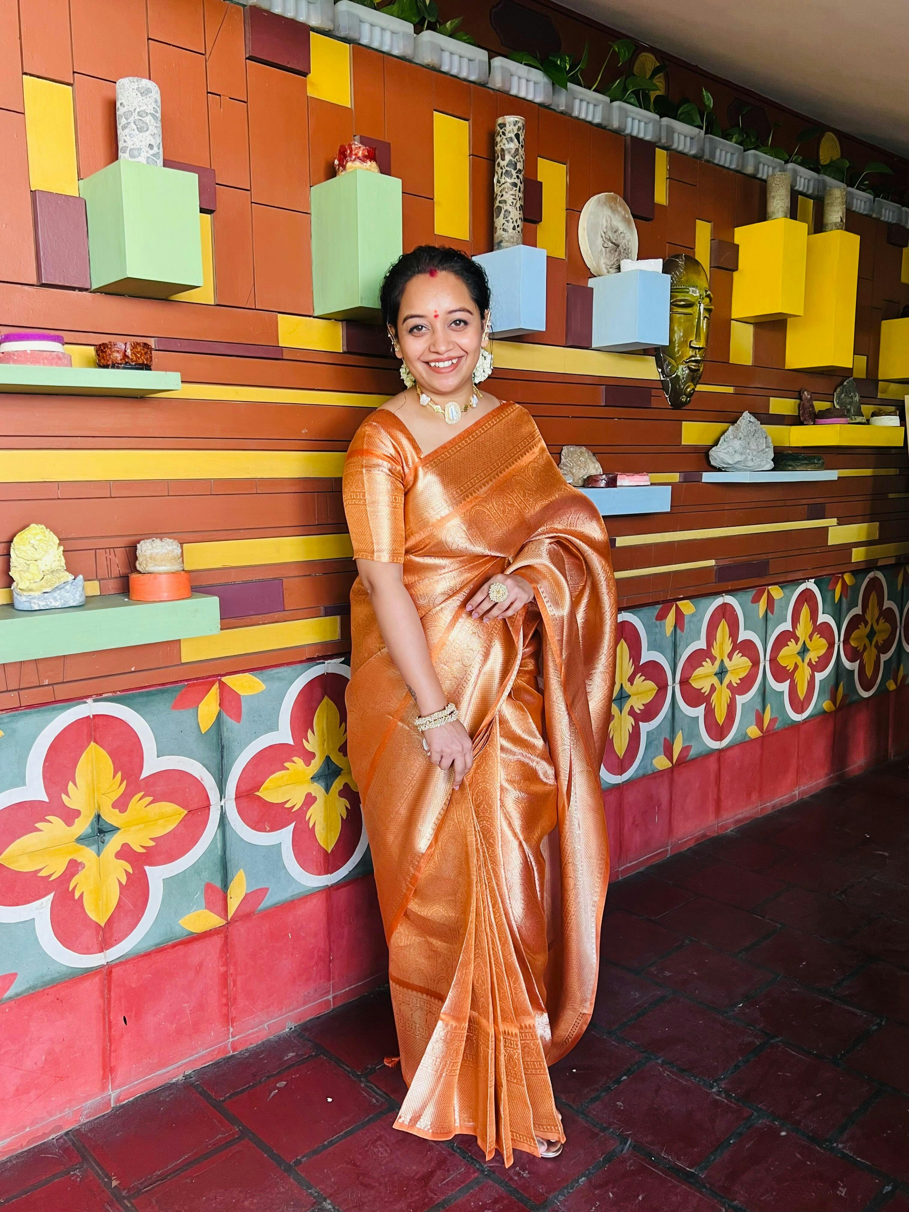 Metallic Orange Kanjivaram Brocade Tissue Silk Copper Zari Heritage Weave Banarasi Saree