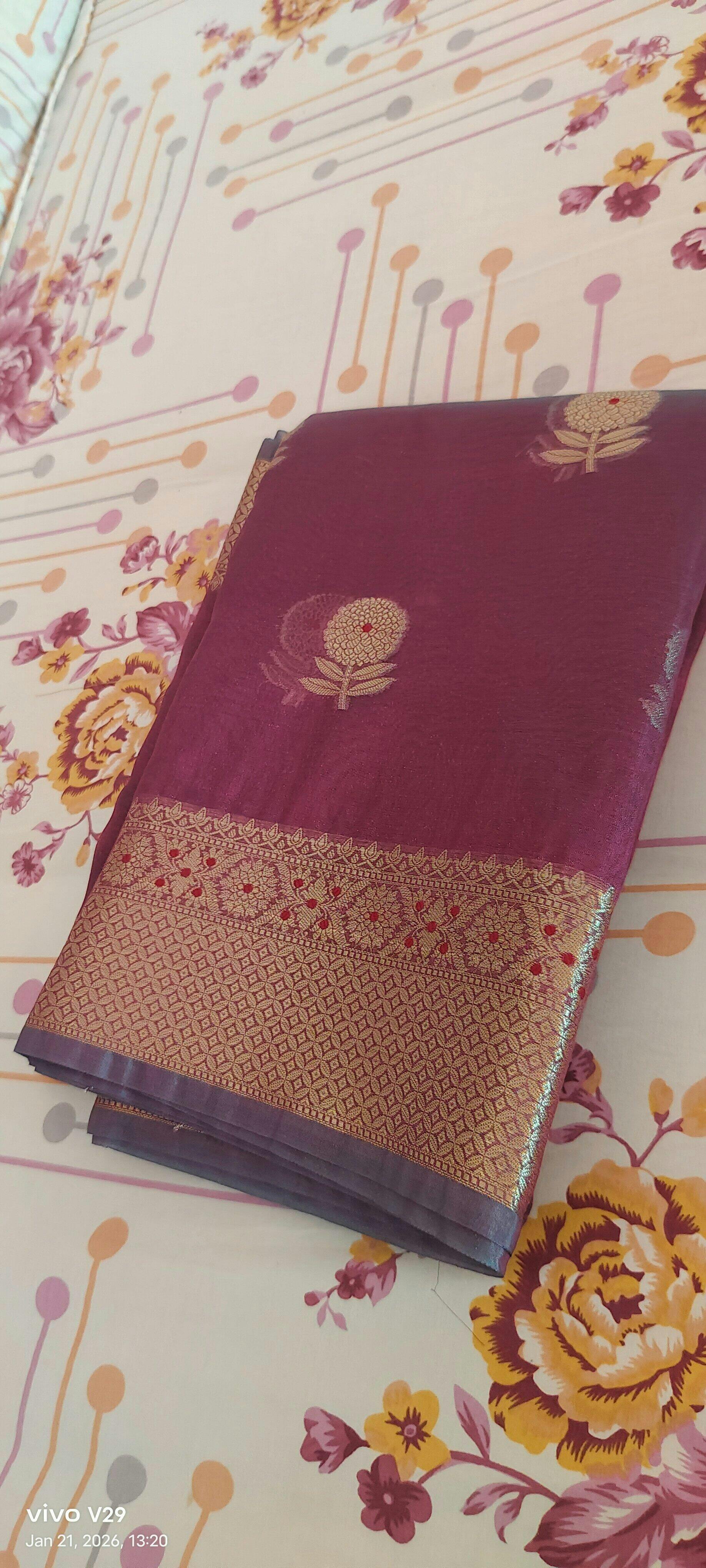 Metallic Orange Shade Soft Tissue Silk Banarasi Saree with Traditional Border Weave