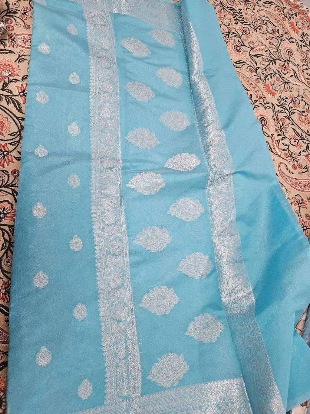 Sky Blue Colour Soft Silk Khaddi Buti Banarasi Saree
